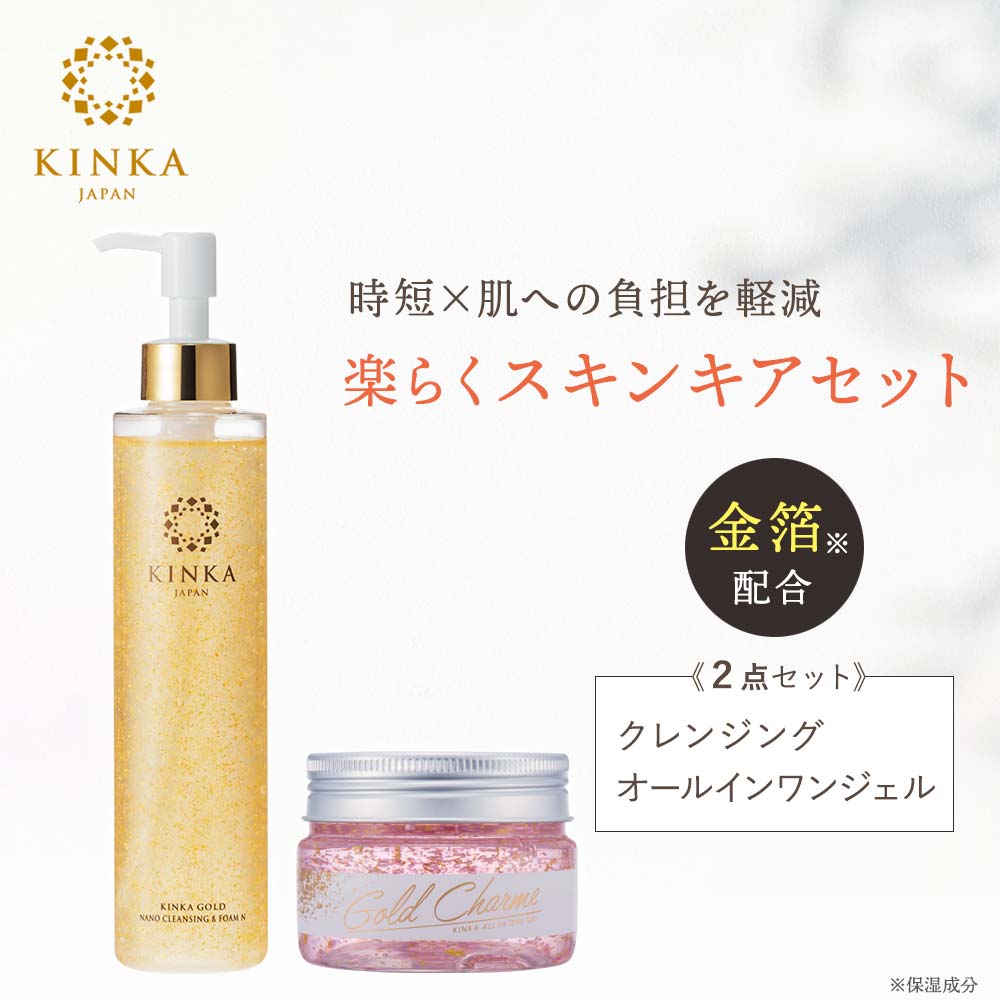 セット商品.2 美容液にこだわったクレンジング 肌への優しさにとことんこだわりました。メイク汚れや古い角質を取り去るだけでなく、たっぷりの保湿成分が肌本来の透明感とうるおいを守ります。 保湿成分の金箔と水溶性プロテオグリカンに加え、カミツレ花エキスやローズマリー葉エキスなど植物性保湿成分が肌を柔らかく整えながら、しっとりとした素顔に。クレンジングと洗顔の1本2役なので、W洗顔は必要有りません。