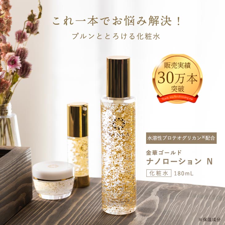 金箔*1をはじめ、保湿成分のヒアルロン酸とアロエベラ葉エキスが肌の内側*2からしっかり潤します。