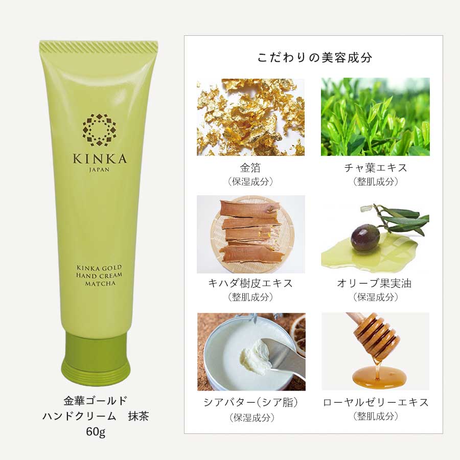 水、エチルヘキサン酸セチル、ステアリン酸グリセリル(SE)、ジメチコン、ペンチレングリコール、BG、グリセリン、ベヘニルアルコール、ステアリン酸、ステアリン酸グリセリル、ステアリン酸PG、オリーブ果実油、カルボマー、水酸化K、バオバブ種子油、パンテノール、シア脂、トコフェロール、グリチルレチン酸ステアリル、チャ葉エキス、アロエベラ葉エキス、キハダ樹皮エキス、尿素、金、アセチルヒアルロン酸Na、加水分解ヒアルロン酸、ポリクオタニウム-51、加水分解エラスチン、ヒアルロン酸Na、ローヤルゼリーエキス、水溶性コラーゲン、フェノキシエタノール、香料